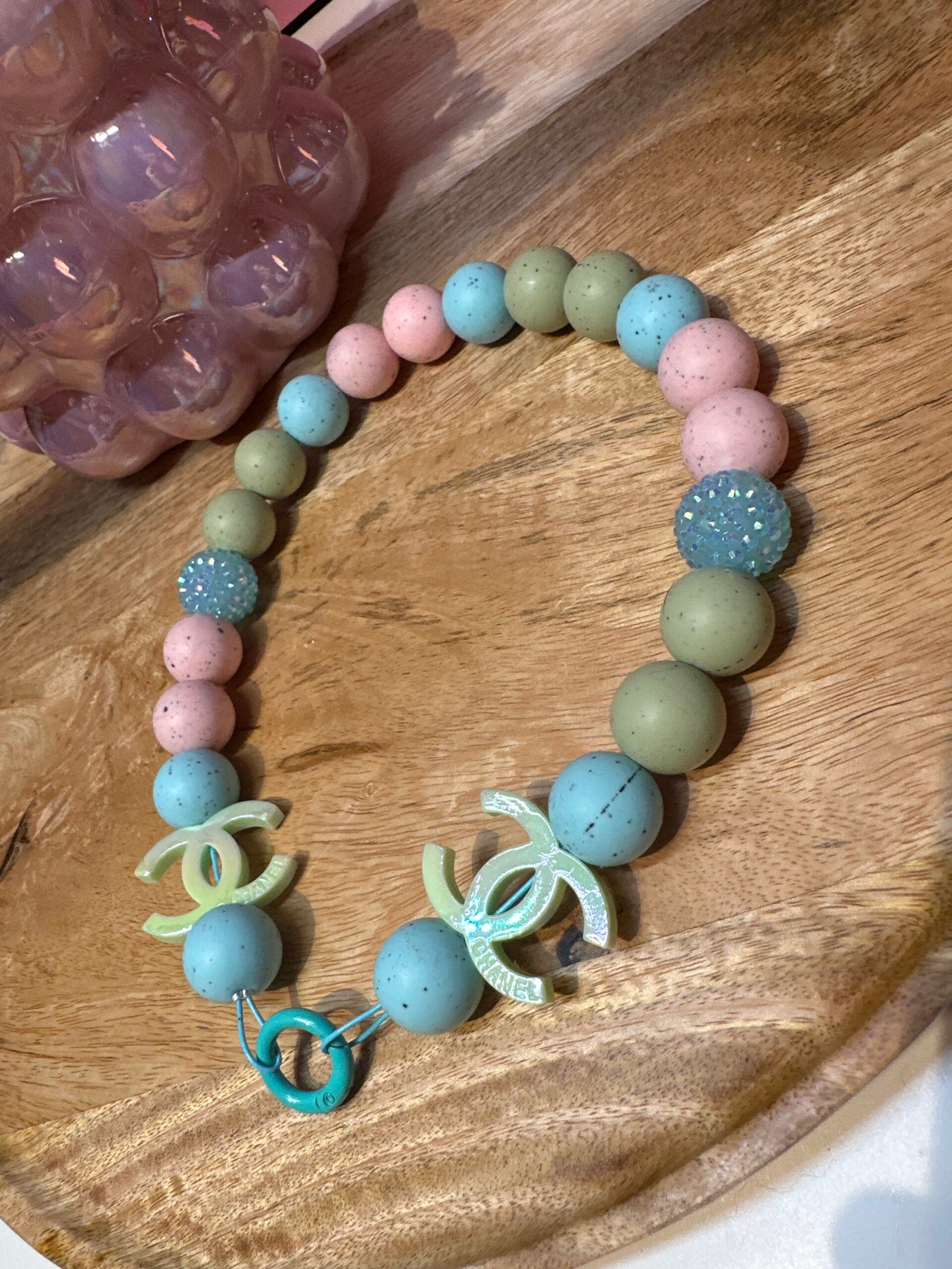 Deze ketting is gemaakt met Acryl & silicone kralen van 15mm