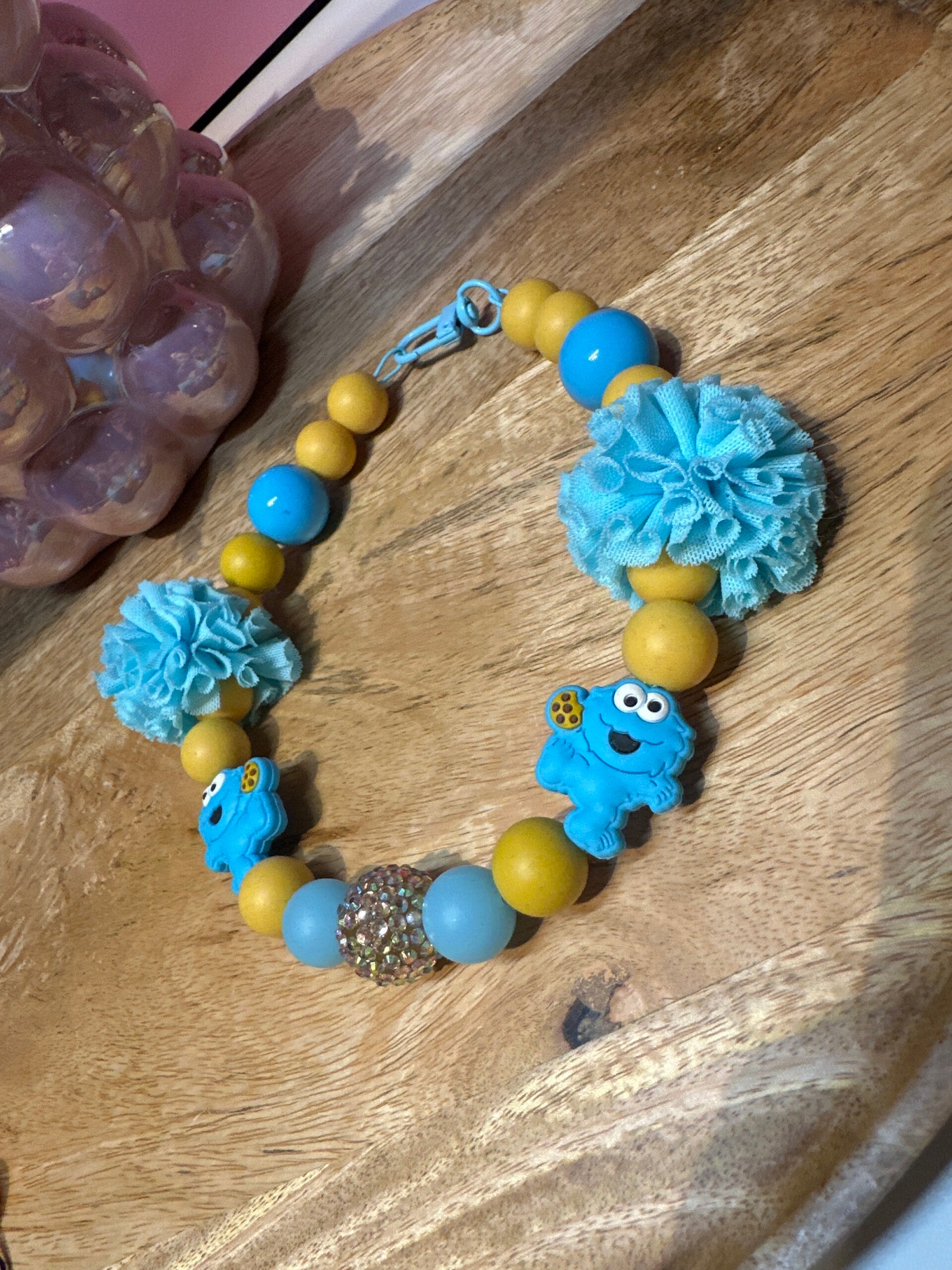 Deze ketting is gemaakt met Acryl & silicone kralen van 15mm & Pomponnetjes